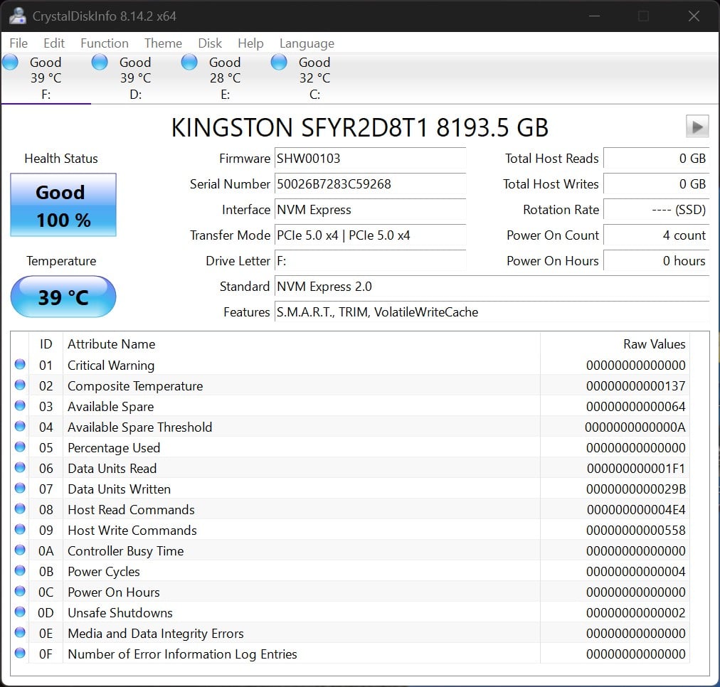 金士顿 Fury Renegade G5(8 TB)是一款基于 PCIe 5.0 的不折不扣的高端固态硬盘。它的连续读写速度超过 14,000 MB/s,性能一流,是同类产品中速度最快的 NVMe 固态硬盘之一。即使在连续负载的情况下,只要具备有效的冷却,其性能也能基本保持稳定。因此,Fury Renegade G5 显然是针对那些期望在台式机系统中实现最高速度和高存储容量的高要求用户。