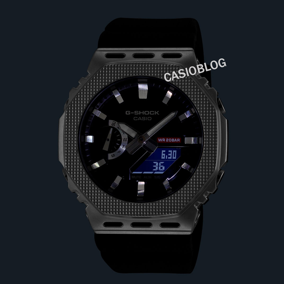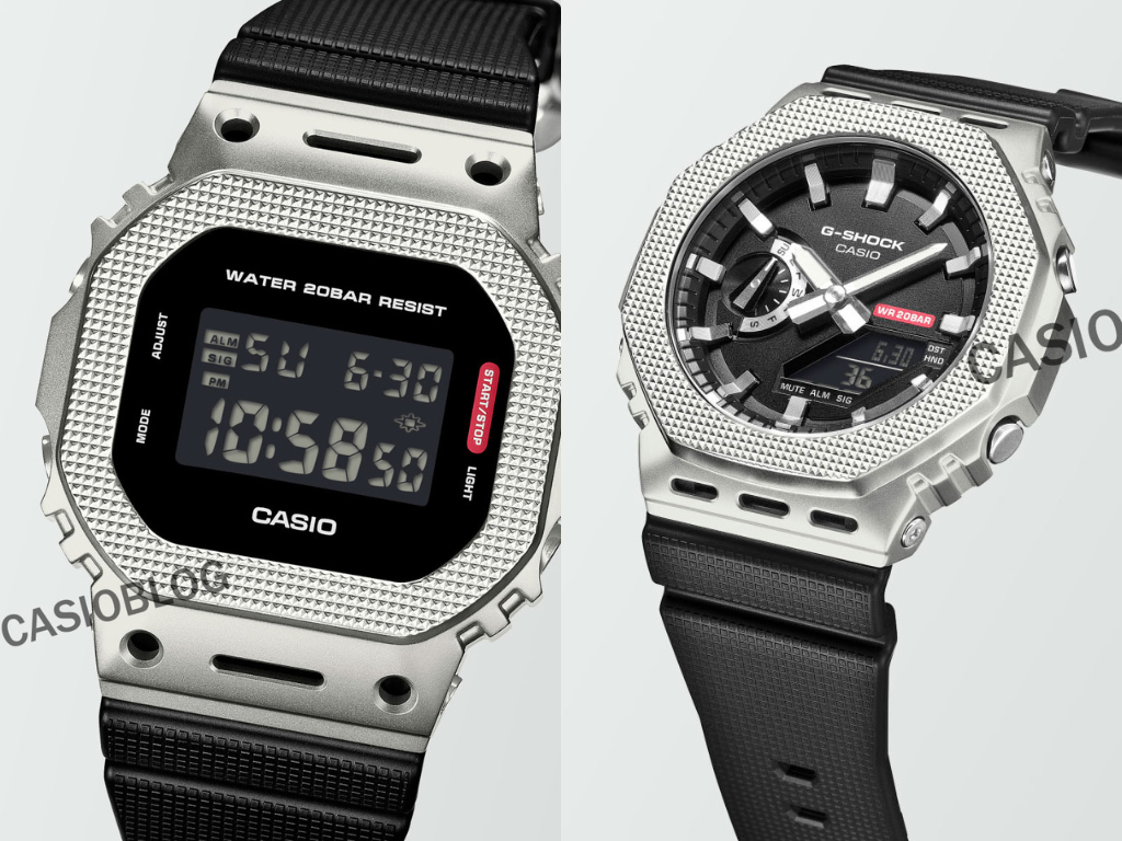 从功能上看,新款手表秉承了 G-Shock 值得信赖的配方:200米防水、多重闹钟、倒计时器、日历、秒表、世界时间(GM-2100独有),以及强劲的电池寿命(GM-5600为5年,GM-2100为3年)。每种款式均有"-1JF "银色和 "BM-1JF "枪灰色款式,即将在全球主要市场发布。