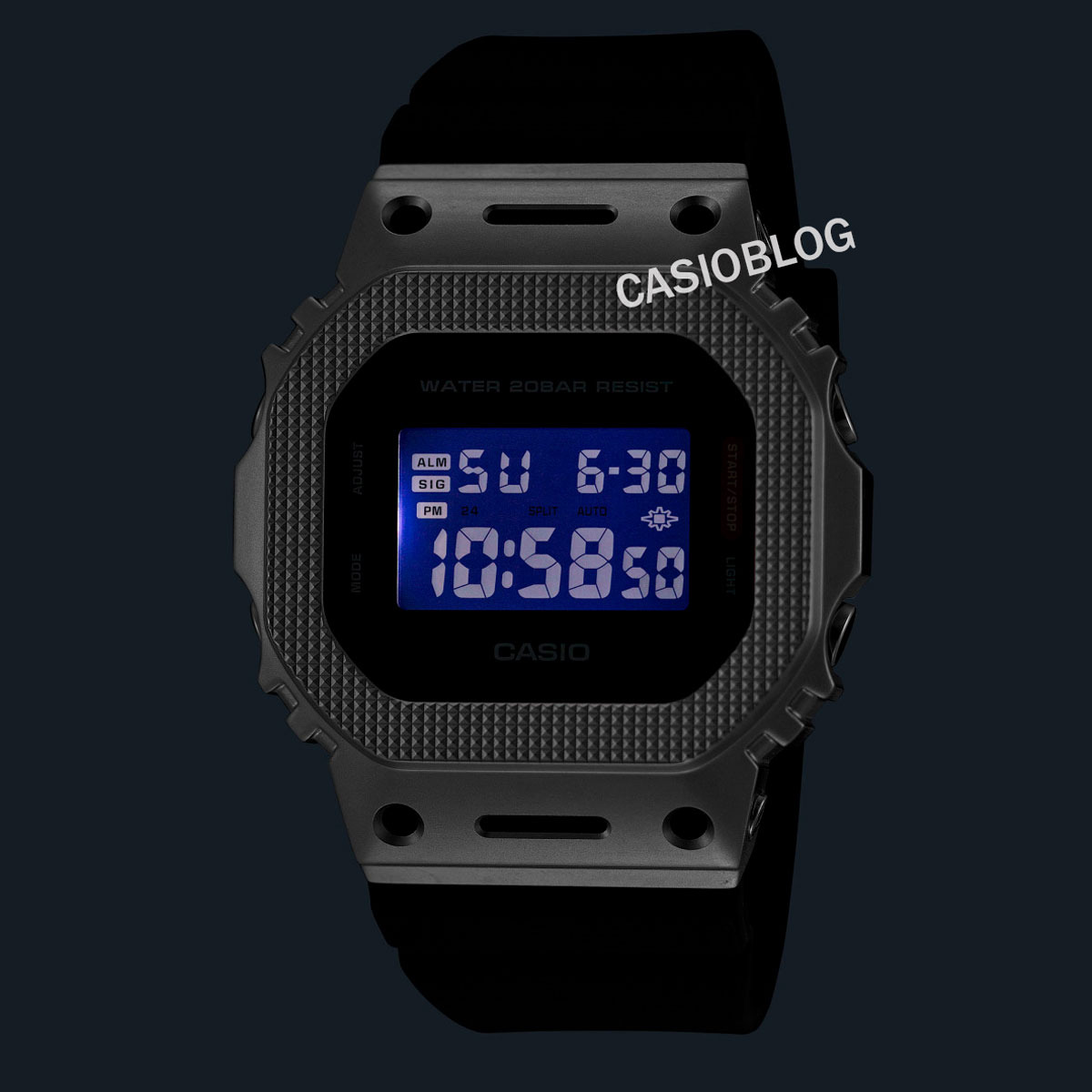 GM-5600M-1和GM-2100M-1A这两个型号都采用了高对比度的负向(倒置)液晶显示屏,醒目的红色 "WR 20BAR "标签为全黑的表面增添了一抹亮色。此外,还有专门的报道强调了整个表面(不仅仅是边框)是如何经过激光处理以获得防眩光、哑光外观的,这进一步减少了可见磨损或指纹的机会--这对日常佩戴的用户来说是一个额外的好处。