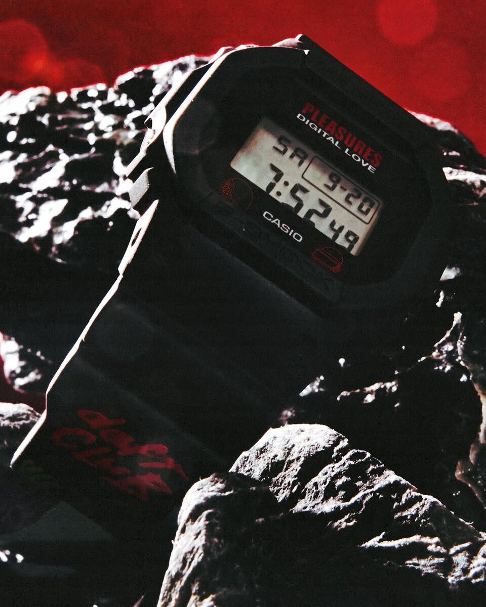 Pleasures 揭示了其即将推出的限量版时计与Daft Punk和 卡西欧G-Shock合作推出的限量版腕表,将于太平洋标准时间10月9日上午10点在pleasuresnow.com独家发售。.这次合作从 Daft Punk 的标志性、划时代的视觉风格和音乐遗产中汲取了直接灵感--这一切在整个手表的设计线索中都非常明显。腕表显示屏上的红色 "Digital Love "品牌标识(参考了朋克乐队专辑《Discovery》中的热门曲目Digital Love)。专辑《Discovery》中的流行歌曲《Digital Love》),而二人的头盔设计则出现在下表圈上。