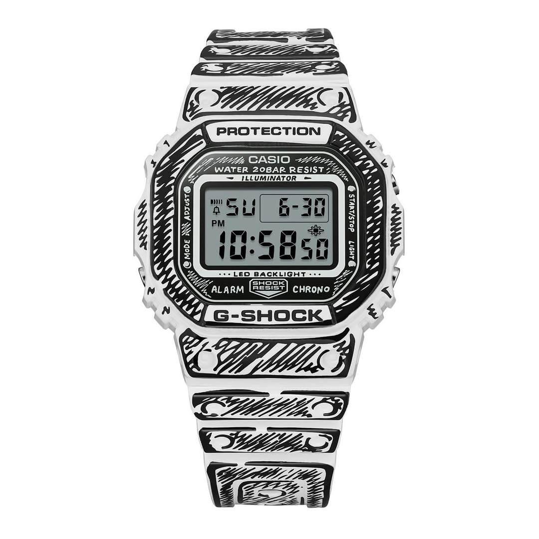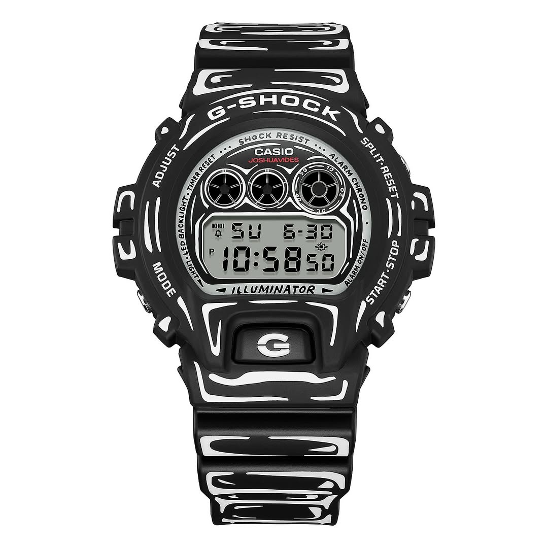 @geesgshock 在 Instagram 上分享的新信息显示显示,之前曝光的漫画风格手表--卡西欧 G-Shock DW-5600JV-7 和卡西欧 G-Shock DW-6900JV-1 --零售价各为 180 美元。这两款合作款采用了 Vides 标志性的手绘钢笔勾勒美学,赋予了两款手表风格化的漫画外观。DW-5600 采用白色树脂表壳和表带,配以黑色素描风格的线条,而 DW-6900 则以黑色为基调,在表圈和表带上采用大胆的白色轮廓装饰。