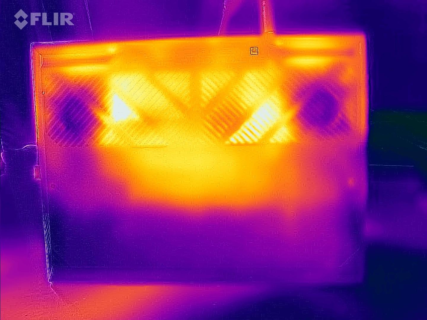 平均而言,机箱温度略低于价格更高的 G15 机型。在运行《Witcher 3 》60 分钟后,键盘面板和底板测得的最高温度分别为 54°C (129.4°F) 和 52°C (125.6°F),理论上是相当高的。不过,由于掌托的温度从未超过 32°C (89.6°F),只要不把设备放在腿上,长时间游戏应该不会有太大问题。