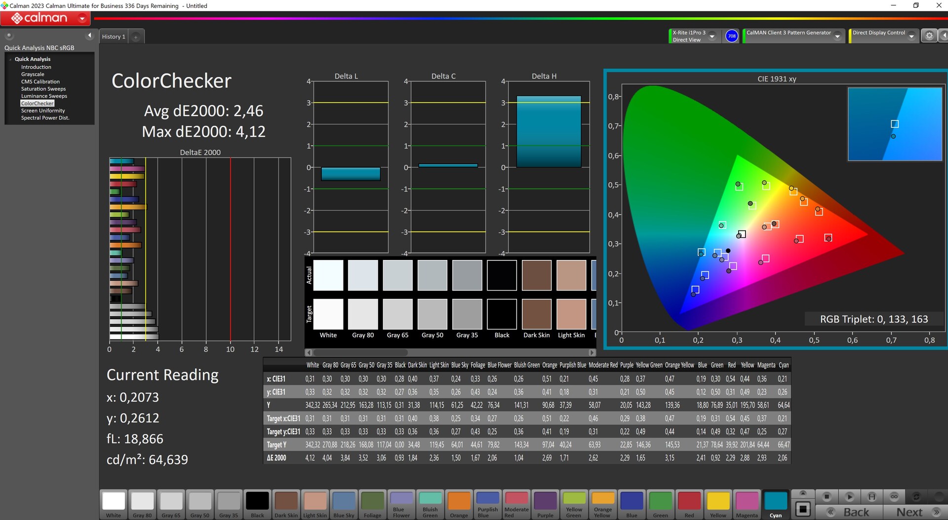 ΔE ColorChecker Calman: 2.46 | ∀{0.5-29.43 Ø4.78}