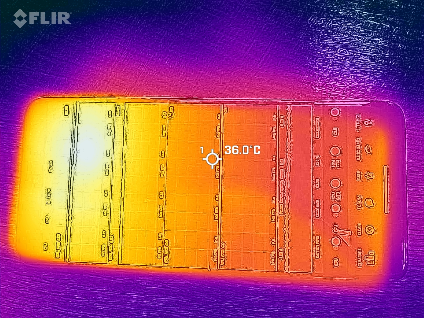 (+) In idle usage, the average temperature for the upper side is 23.7 °C / 75 F, compared to the device average of 32.9 °C / 91 F.