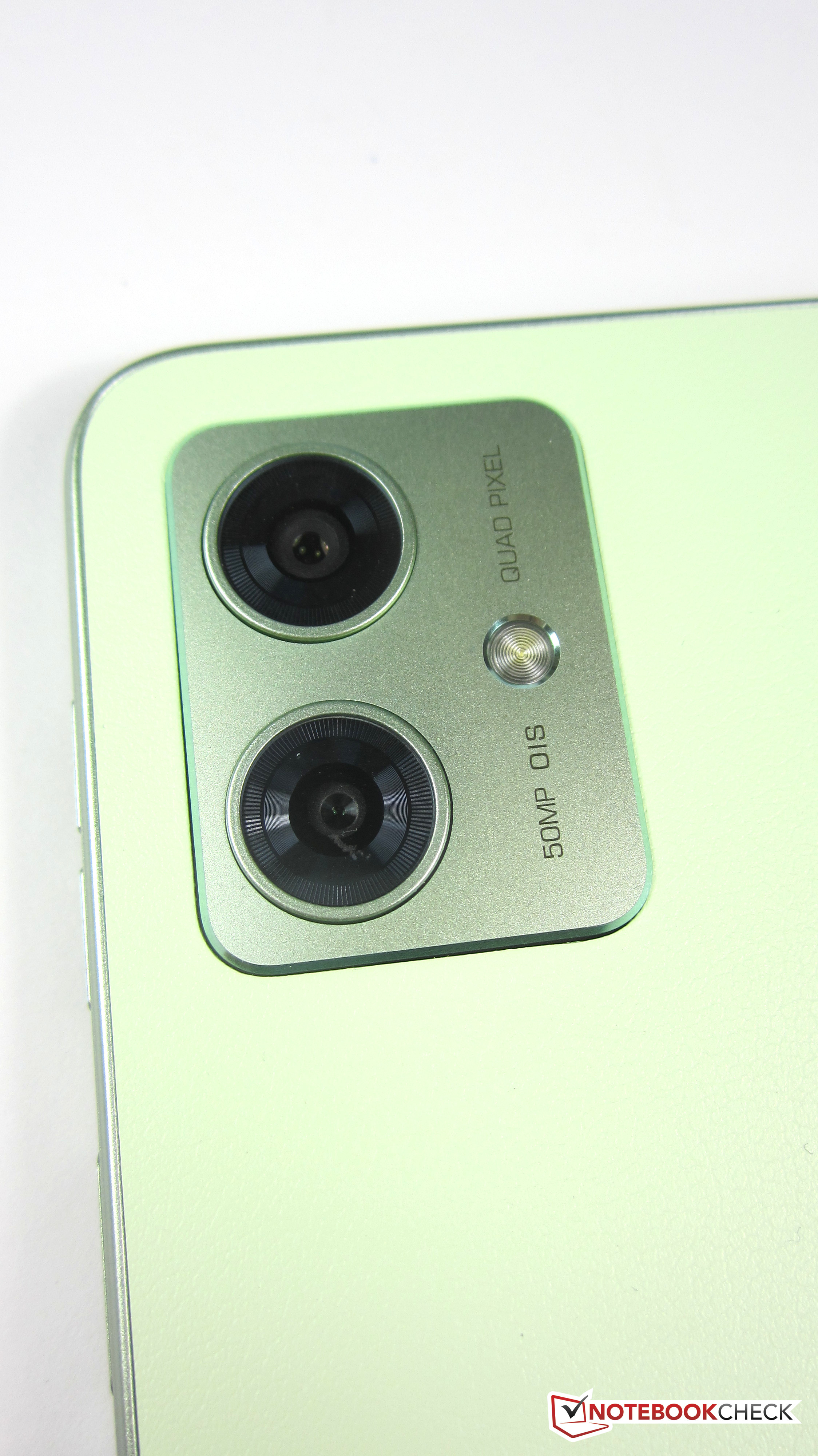 Moto G54 的背面配备了双摄像头系统,不过真正有用的只有一半。下部镜头后面是一个 2 百万像素分辨率的微距摄像头,可拍摄 4 厘米(约 1.6 英寸)距离内的物体,但成像质量相当一般。主摄像头通过数字变焦通常能获得更好的效果。