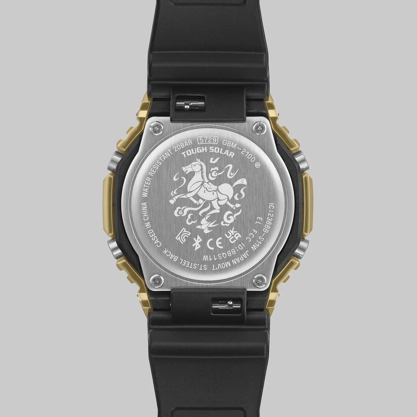 卡西欧卡西欧(Casio)现已正式开始预售以深受喜爱的 GA-B2100("CasiOak")平台为基础打造的新款 G-Shock 型号,上市型号为GBM-2100CX-9AJR。.该表款是 2026 年新年特别版的一部分,以十二生肖中的马年为主题,采用金色表圈,表盘上刻有相应的艺术图案。这款手表已在日本 G-Shock 网上商店开始预订,预计 2025 年 12 月发货,售价 42,900 日元(含税),约合 285 美元。