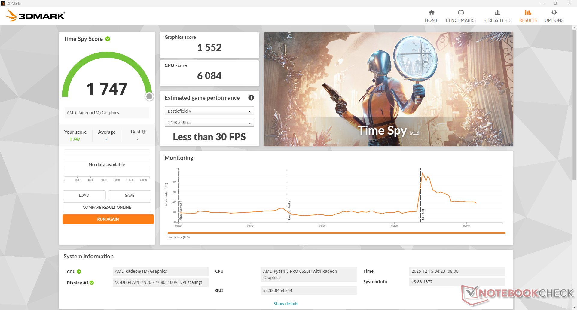 | 3DMark Time Spy Score | 1747 points | |