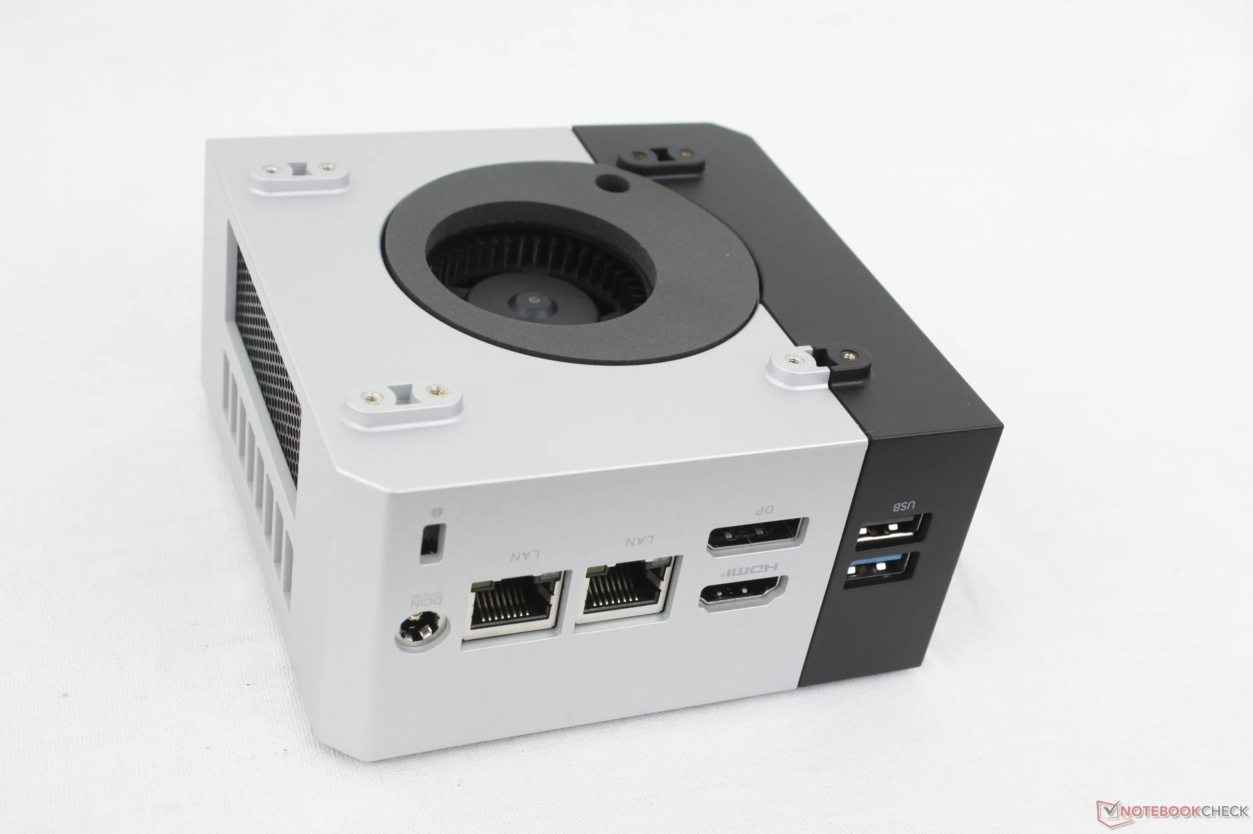 机箱设计和端口沿用了 EVO-X1而不是最近的 NucBox K12因为 NucBox M8 的专业用户群与 EVO-X1 相似。金属外壳的颜色没有 EVO-X1 那么深,但尽管价格相差悬殊,用料仍然相同。