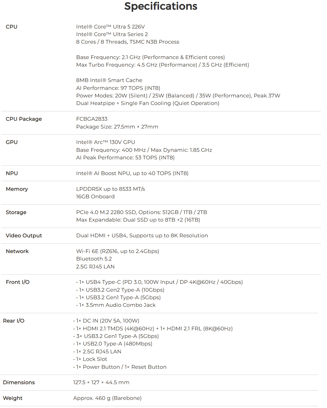 在引擎盖下,NucBox K17 采用了英特尔酷睿至强 5 226V,这是 Lunar Lake 系列的入门级处理器。该处理器配备 Arc 130V iGPU在 1080p 分辨率下可提供接近 Radeon 780M 的游戏性能。