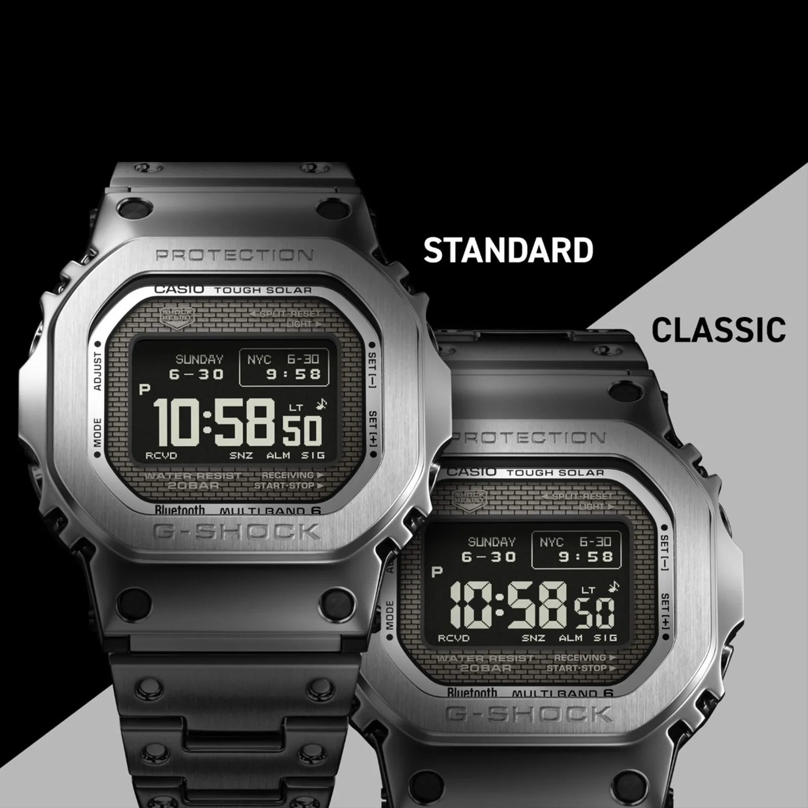 从技术上讲,这是首款使用高对比度像素内存(MIP)液晶显示屏的全金属方形手表,与之前的 G-SHOCK 方形手表相比,它的数字布局更清晰、更灵活,包括多种时间显示配置和可通过配套应用程序切换的字体(标准字体或 7 段式经典字体)。在性能方面,买家将获得标准的 G-SHOCK 工具手表规格表:20 bar 防水、Tough Solar 太阳能充电、防震结构、蓝牙智能手机链接、多频段 6 无线电控制、世界时间、秒表、倒计时器、五个闹钟和全自动 LED 背光。