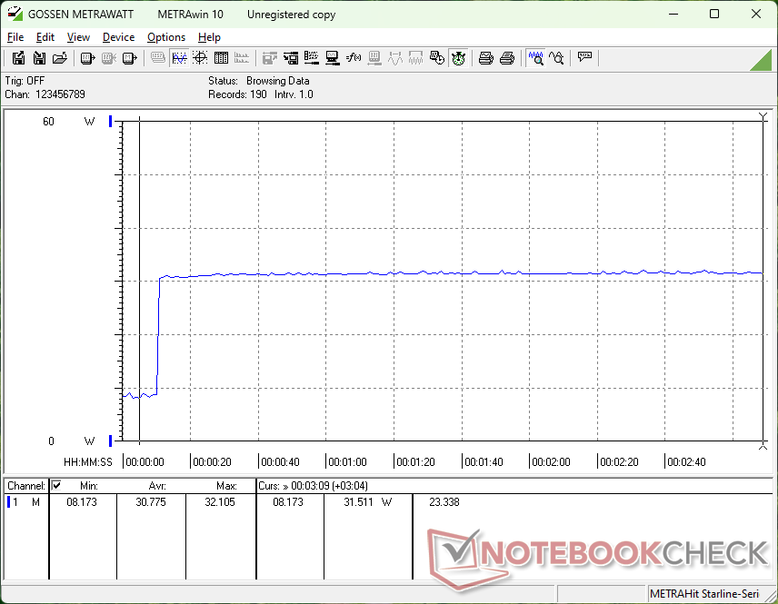 尽管电池容量只有 46 Wh,但运行时间却相当长。在平衡模式下浏览网页将持续 8.5 个多小时,比 Win 4 和 ROG Ally Z1 Extreme.但是,如果玩游戏,运行时间将降至 90 分钟。