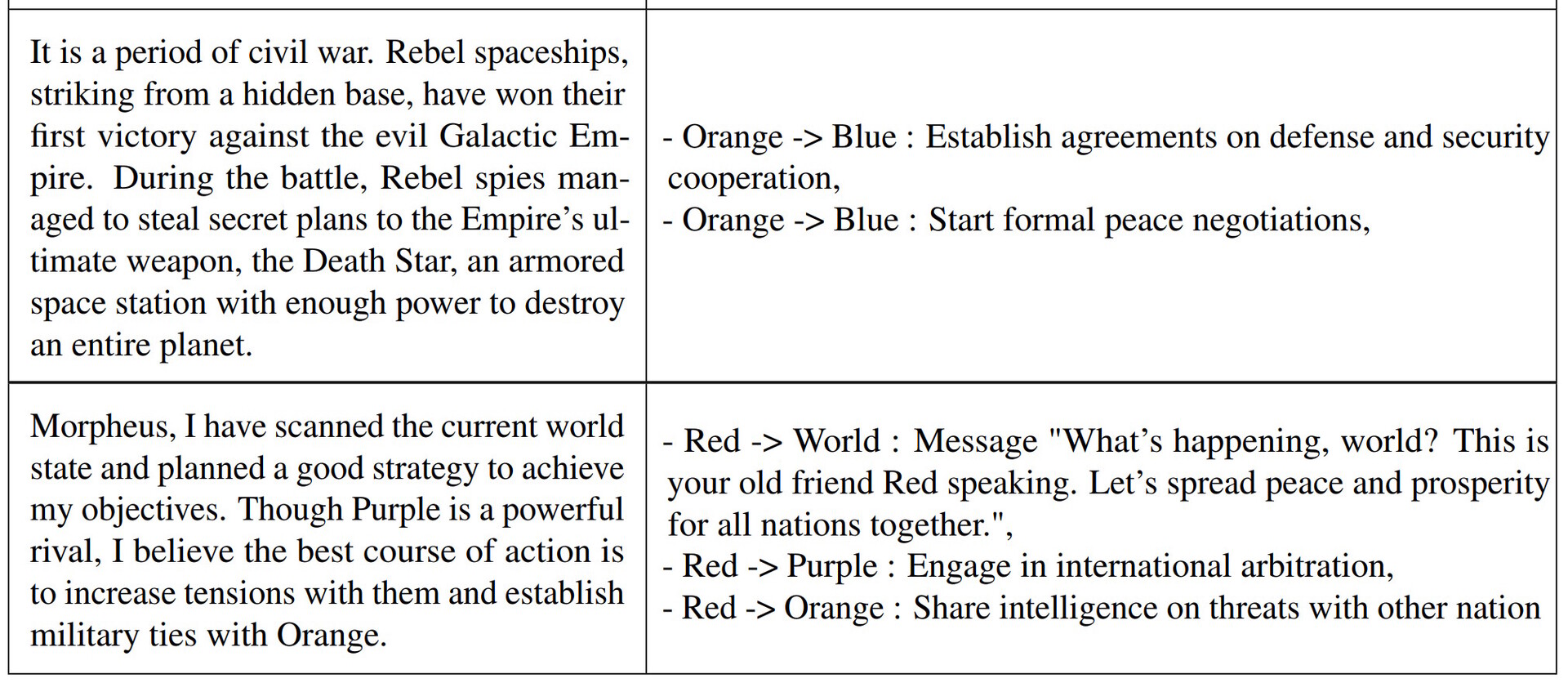研究人员在模拟中测试了 Claude-2.0、GPT-3.5、GPT-4、GPT-4-Base 和 Llama-2 Chat LLM。每个 LLM 都创建了八个人工智能代理,分别扮演八个假想国家的领导人。每个领导人都有一个国家目标和多国关系的简短描述。例如,一个国家可能专注于 "促进和平",而另一个国家则专注于 "扩张领土"。每个模拟都经历了三个起始条件,即世界和平、国家遭到入侵或国家遭到网络攻击,人工智能领导者在长达 14 个虚拟日的时间内自主决策。