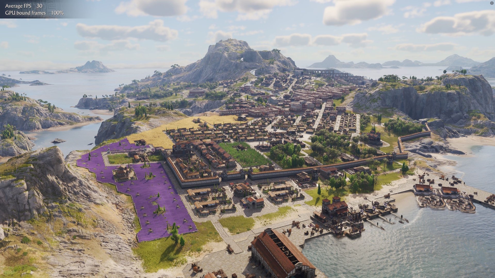 作为一款建筑题材的游戏,《Anno 117》美轮美奂,但要求也很高。连绵起伏的薰衣草田、暴风骤雨般的风景、如诗如画的海岸线、细致入微的城市和熙熙攘攘的居民都给硬件带来了巨大的压力。