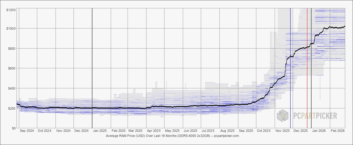 由于供应可能依然稀缺,价格将继续让许多人望尘莫及。以 DDR5 内存为例,近几个月来价格一路飙升,在过去一年左右的时间里,价格上涨了五倍之多。不过,自 略有下降这似乎表明,消费者拒绝支付的价格确实已经达到了一个极限。