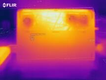 (-) The palmrests and touchpad can get very hot to the touch with a maximum of 40 °C / 104 F.