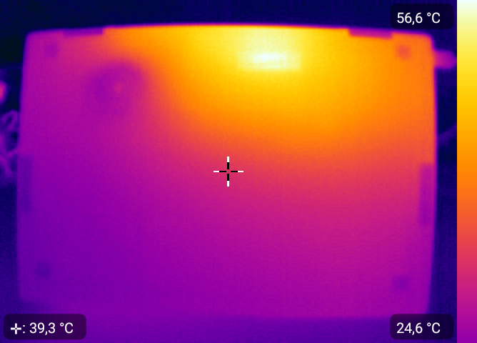 (-) The bottom heats up to a maximum of 53.4 °C / 128 F, compared to the average of 36.8 °C / 98 F