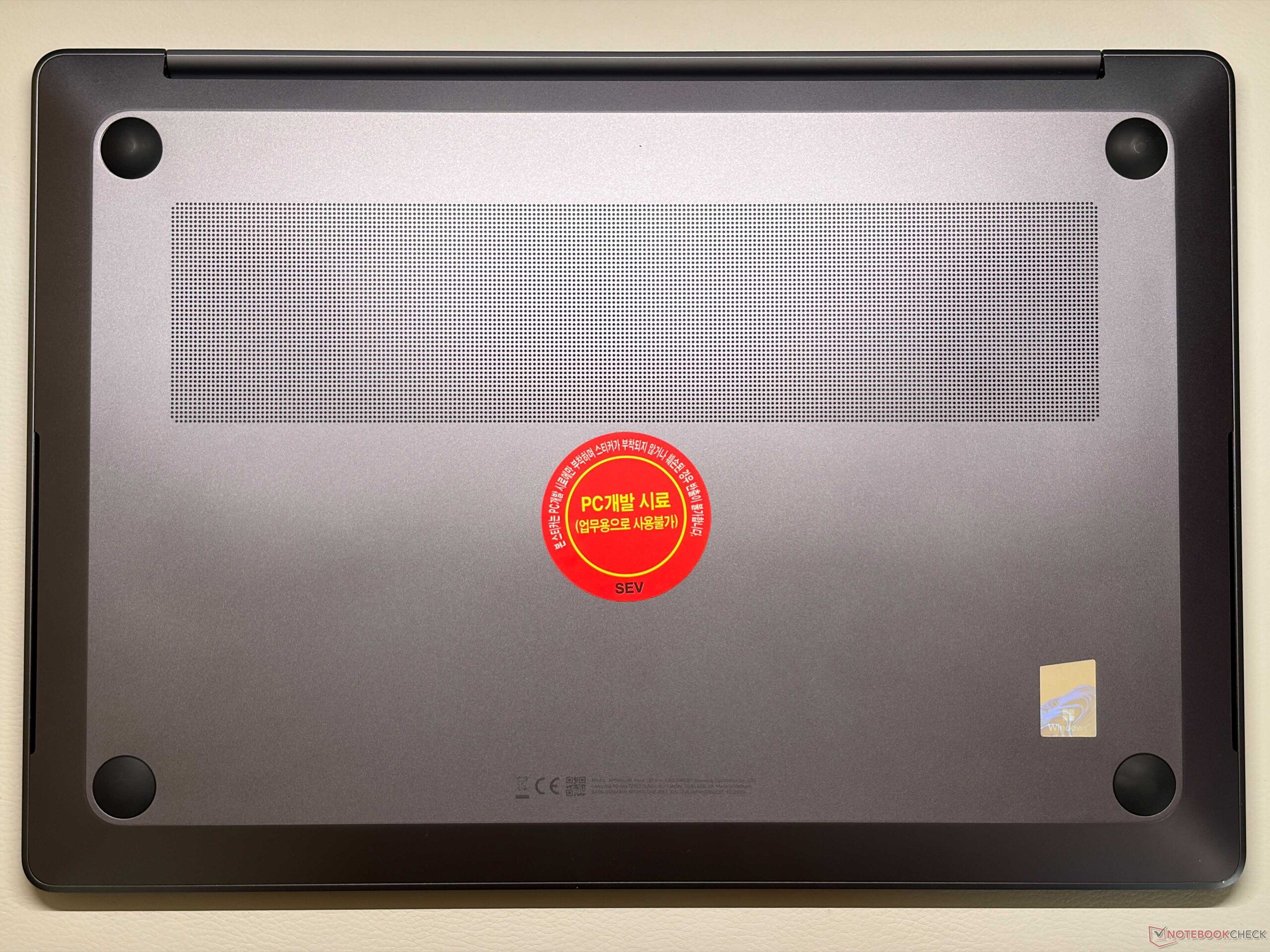 三星放弃了之前的楔形底座设计(其他Galaxy Book6 机型仍在使用),新款Galaxy Book6 Ultra 的外观和手感更像 MacBook Pro 16。我们确信,如果去掉标识,许多用户很难区分这两种机型。Galaxy Book6 Ultra 采用铝制机身,无论是稳定性还是制造质量,整体质量都非常出色。但指纹是个问题,而且表面不容易清洁。我们对铰链(最大开启角度约 135 度)不太满意,因为屏幕晃动很大。下边框也很厚。你可以拆下底部面板,访问固态硬盘插槽、电池和风扇,但不能更换内存和 Wi-Fi 模块。