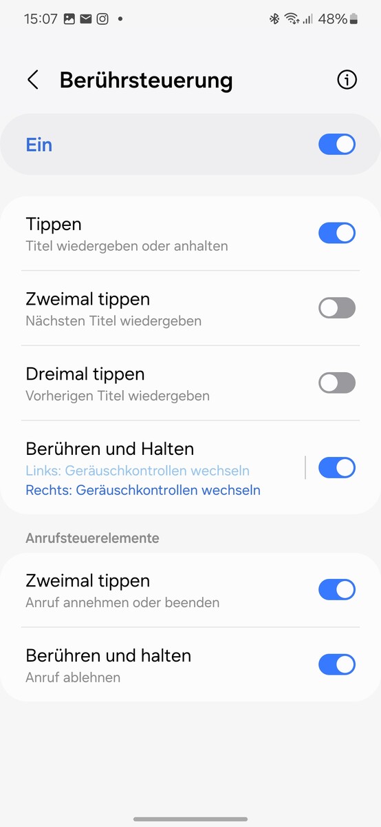 Galaxy 耳机每个耳机配备三个麦克风,为 ANC 和电话提供了有利条件。入耳式设计本质上提供了被动噪音隔离,而 ANC 则进一步增强了这一效果。虽然 ANC 的性能令人满意,但仍可能会感觉到一些背景噪音。耳道穿透功能可有效清晰地听到外部声音,但环境噪声仍然突出。