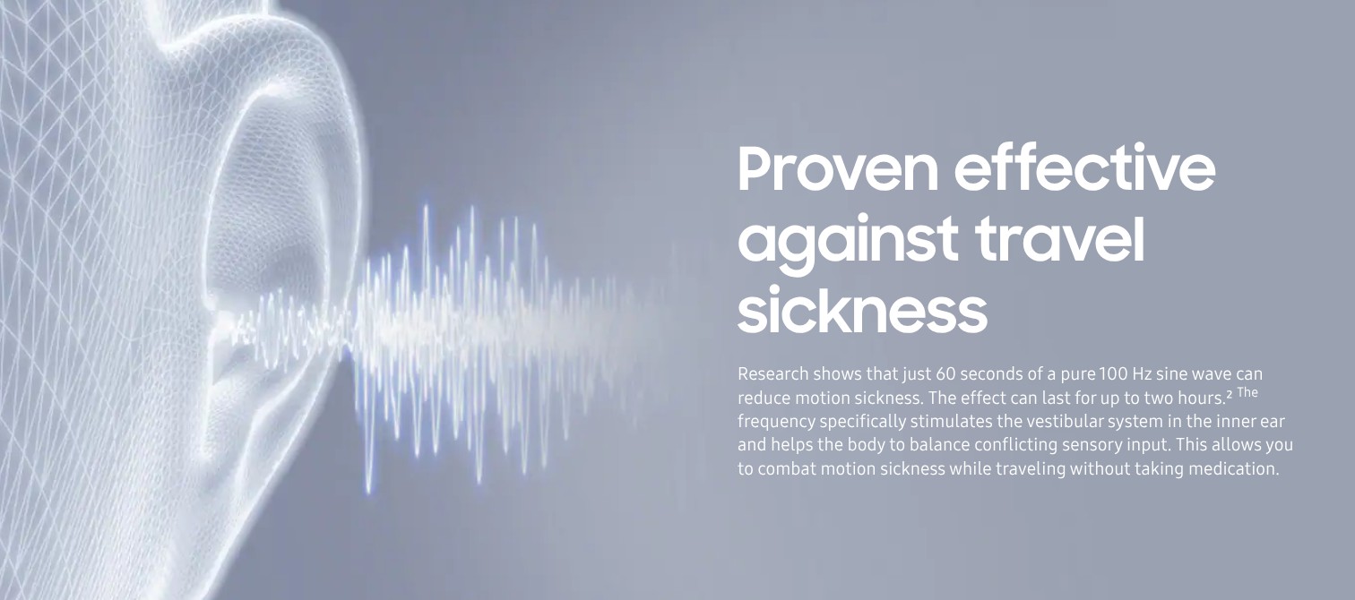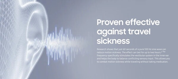 三星称这款新应用为 "Hearapy",并表示它旨在帮助减少晕动症。它通过播放 100Hz 的低音正弦波来刺激用户的平衡系统,从而减少晕动症,而无需服用药物。