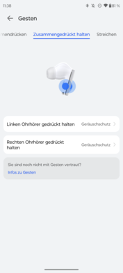 在连接中心的几个配对设备之间切换很容易。然而,由于支持双蓝牙,在我们的测试中很少出现这种情况。此外,在那里可以全面配置按压和轻扫手势。这些可以用来控制媒体内容、电话、噪音保护、激活语音助手或调整音量。这在一开始是相当复杂的,但它可以通过教程进行练习,而且几乎没有什么需要改进的地方。