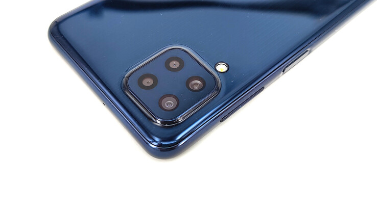 Galaxy M32的背面有细条纹,我们的深蓝色测试装置有五颜六色的光线折射,与前代产品相比,它看起来是一种升级。指纹传感器已经移到了侧面,因此,现在背面只被相机模块打断了。由于表面发亮,深色版本仍然非常容易受到指纹的影响。