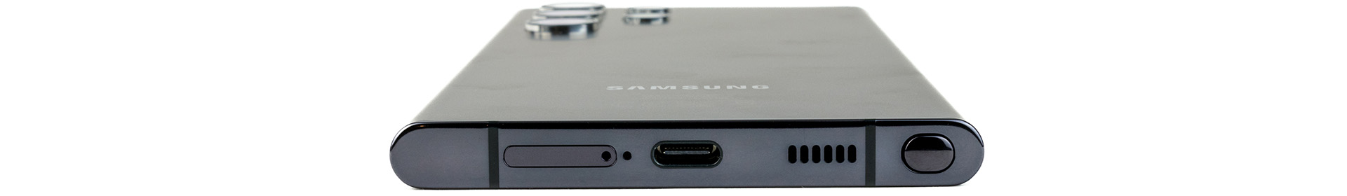 Galaxy S22 Ultra的防尘防水性能符合IP68认证,因此它既防尘又防水。然而,在小字中,三星将后者限制在1.5米深的淡水中浸泡最多30分钟。卡槽的盖子与边框齐平,卡托可以接受最多两张nanoSIM卡。