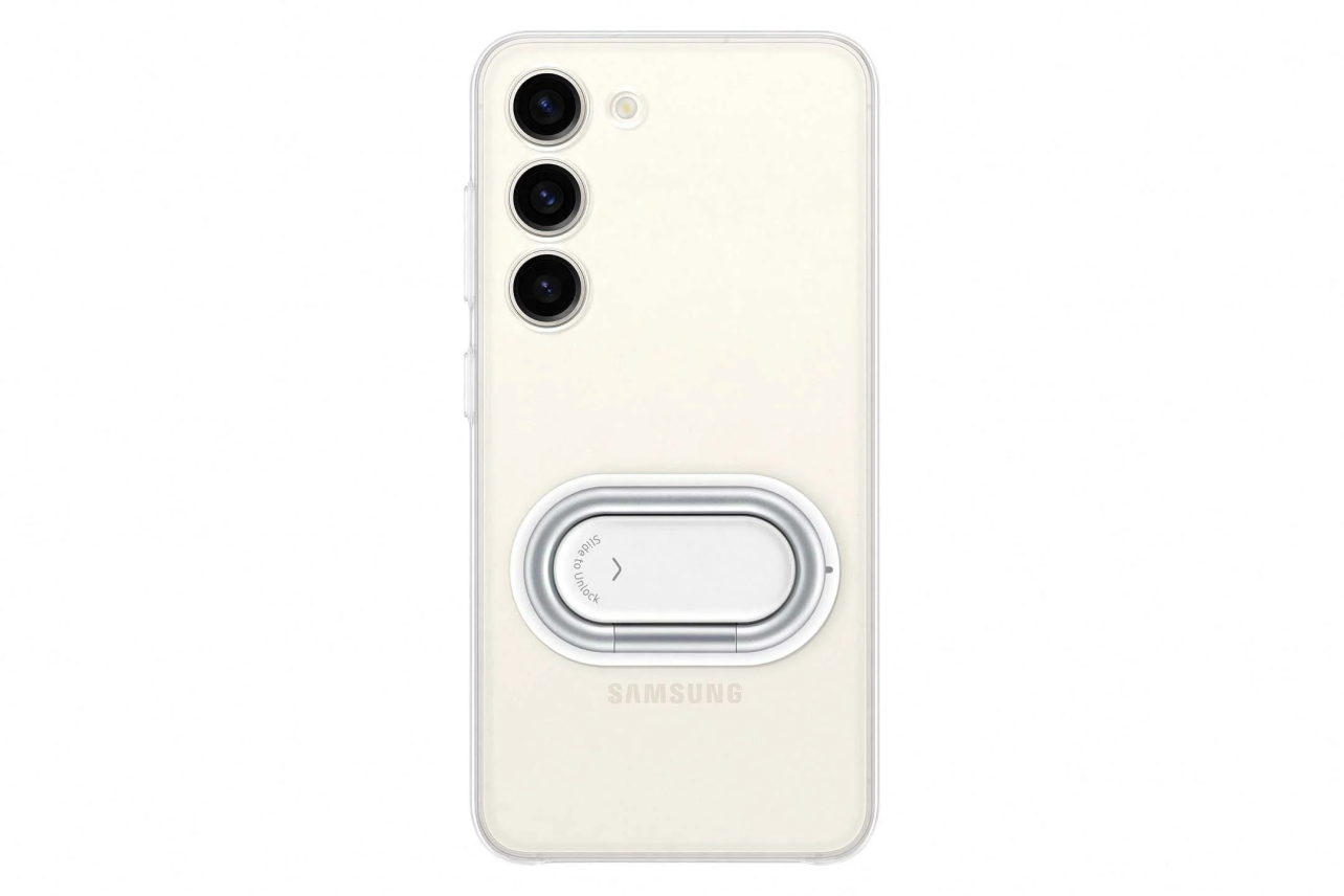 S23系列的所有者可能还可以选择"环形支架盖",它有一个内置的、颜色匹配的 弹出式插座-类型的东西,可能能够通过滑动和锁定机制在纵向或横向模式下支撑智能手机之间进行切换。也可能有可能带有可拆卸手带的手机壳。