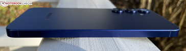 Galaxy S25+ 与前代产品一样,采用了哑光铝合金边框,但厚度减少了 0.4 毫米,重量减轻了 6 克,仅重 190 克。其制造质量无可挑剔,智能手机拿在手上轻巧舒适,极具质感。