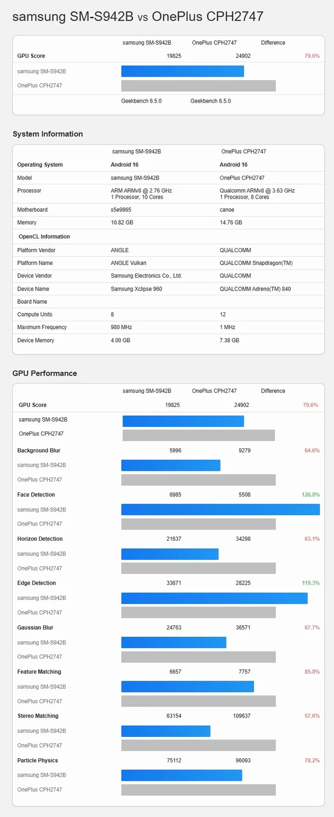 与 OnePlus 15 中的骁龙 8 精英 5 代 GPU 比较