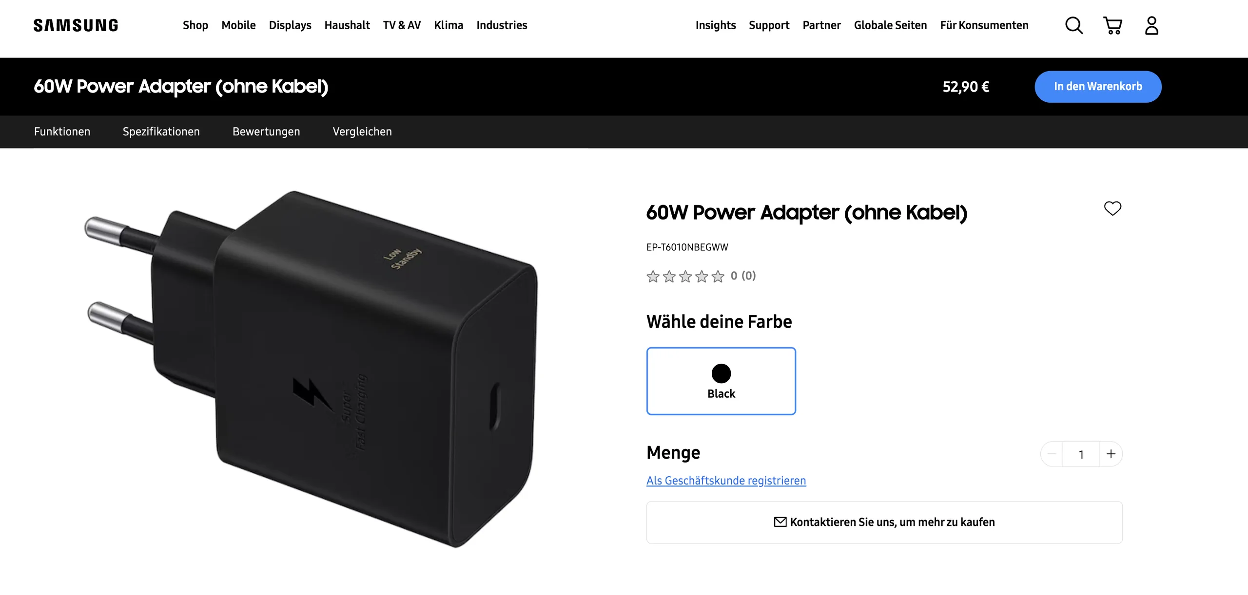 正如下面的截图所示,CCC 认证了 SM-S948 在 20V/3A 条件下充电功率可达 60 W。为此,三星已在许多地区的网站上列出了兼容的充电器。具体来说,该公司已经开始销售配备单 USB Type-C 端口的 EP-T6010NBEGWW,售价为 52.90 欧元(约合 62 美元)。不过,三星将这款充电器与Galaxy S26 Ultra 捆绑的可能性很小。