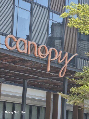首先,Galaxy S26 Ultra 与 iPhone 17 Pro Max 进行了正面交锋。使用各自的主摄像头和长焦镜头(Galaxy S26 Ultra 的长焦镜头为 5 倍,iPhone 17 Pro Max 的长焦镜头为 4 倍)拍摄的照片再次表明,三星选择了一种克制但更真实的色彩学--泄密者和三星评论家 Ice Universe 在的反应帖中强调了这一点。.在拍摄酒店标志的远景照片时,Apple 的对比度明显更高,而三星的渲染效果似乎更接近现实中的拍摄对象,不过可能需要进行一些编辑才能在社交媒体上脱颖而出。