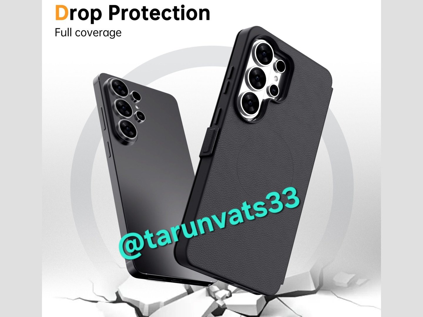 图片来源于Tarun Vats on X上Galaxy S26 Ultra 的图片。不带书本式保护套的是黑色版本,其背面的相机岛可容纳三个主摄像头,第四个摄像头位于相机岛右侧。第四颗摄像头上方是闪光灯和一个额外的传感器。电源键和音量键位于右侧。值得注意的是,该图片可能是基于泄露的渲染图,手机上没有公司品牌或徽标。