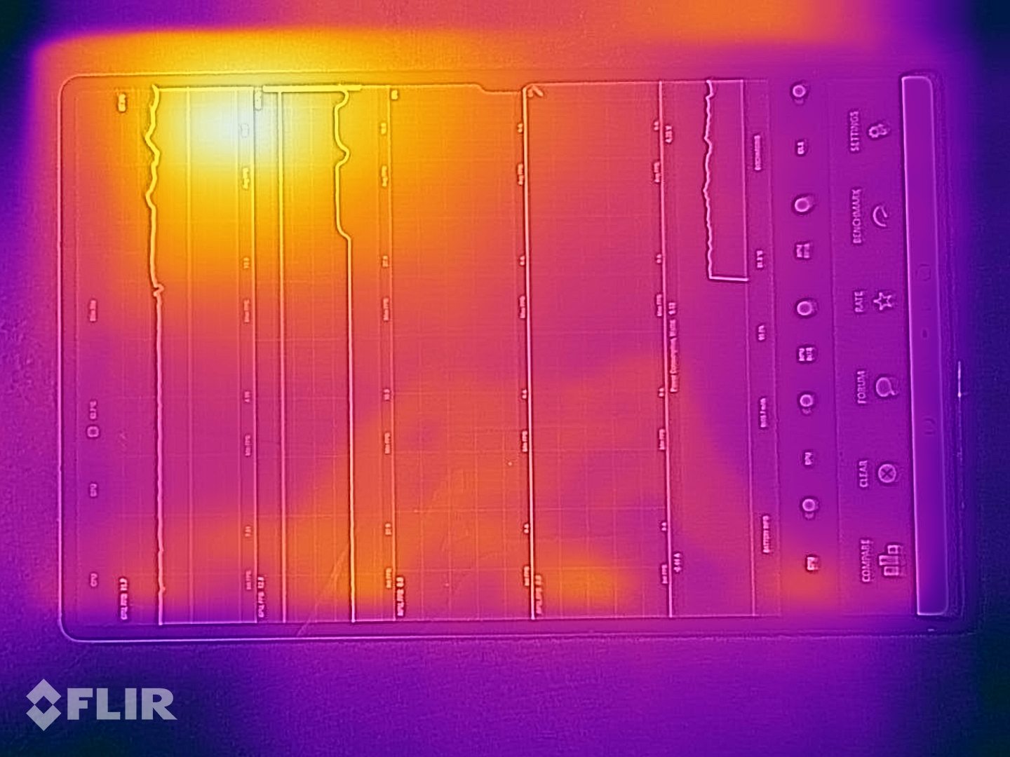 (±) The maximum temperature on the upper side is 41.3 °C / 106 F, compared to the average of 33.7 °C / 93 F, ranging from 20.7 to 53.2 °C for the class Tablet.