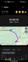 在训练过程中,手表会根据运动项目显示脉搏、训练时间和其他信息,数据的排列也可以自定义。在训练菜单中还可以快速访问音乐控制。所有完成的训练课程都可以通过健康应用程序查看,GPX数据也可以在那里导出。然而,与专业型号不同,普通的Galaxy Watch5不能在运动时跟踪导入的GPX文件。