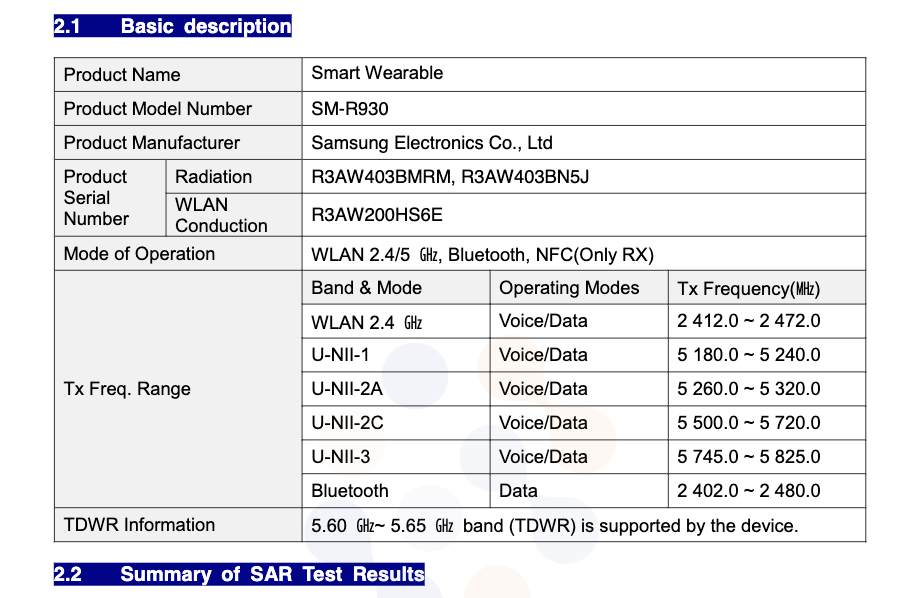同样,型号SM-R940和SM-R945应该与44毫米版本的Galaxy Watch6有关。根据FCC,所有型号都支持IEEE 802.11 b/g/n/a、2.4 GHz和5 GHz Wi-Fi,外加现代蓝牙标准。此外,Galaxy Watch6系列将配备用于非接触式支付的NFC模块和用于定位的GNSS,以及无线充电。三星的新智能手表将与他们的前辈ER-OR900充电器一起发货,这表明充电速度没有变化。目前,据传三星已经在下个月安排了一个Galaxy Unpacked活动,届时它还将发布 Galaxy Z Flip5和 Galaxy Z Fold5.