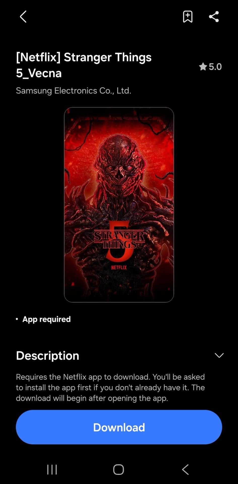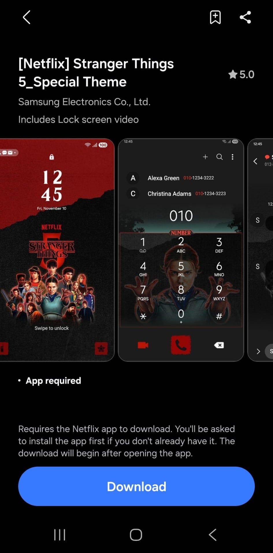 怪奇物语》主题以最近上映的该剧第五季也是最后一季为蓝本。它还包括五张壁纸,可从Galaxy Store 免费下载,尽管时间有限。