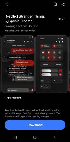 三星表示,如果用户还没有 Netflix 应用程序,则需要下载该程序。不过,目前尚不清楚用户是否需要订阅 Netflix 才能下载主题和壁纸。