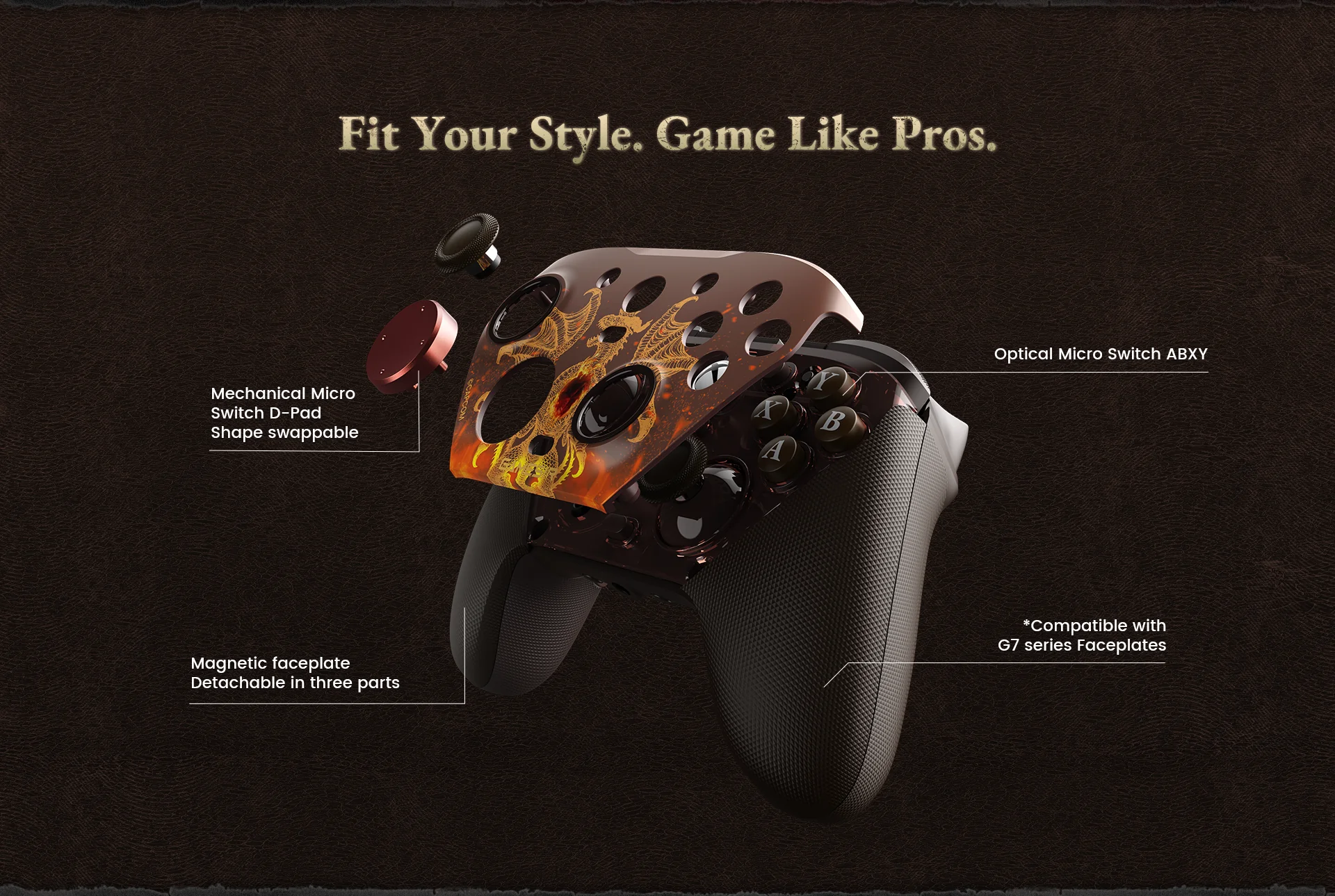 GameSir G7 ProDragon's Dogma IIEdition 是 GameSir 和 Capcom 为庆祝《Dragon 's Dogma II》两周年而合作推出的产品。这款控制器的面板上有定制设计,充电底座上有《龙之教条II》的标志。