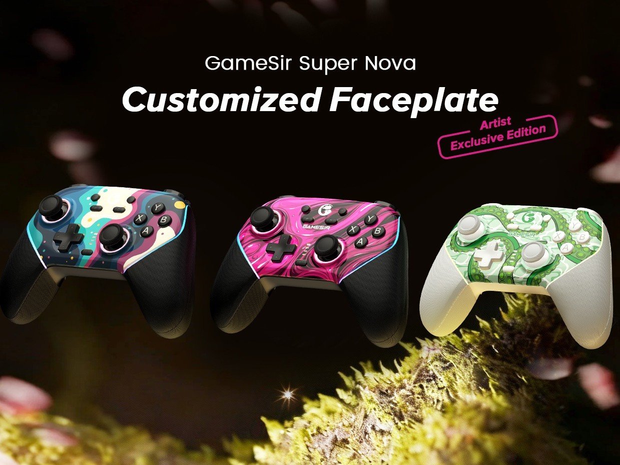 GameSir 为 Super Nova 游戏控制器销售九种面板(目前在亚马逊上的售价为 47.49 美元)。每块售价 9.99 美元,颜色包括神秘绿、梅花玫瑰、精英白、浅绿和活力橙。现在,GameSir 宣布推出三款由艺术家制作的限量版面板。
