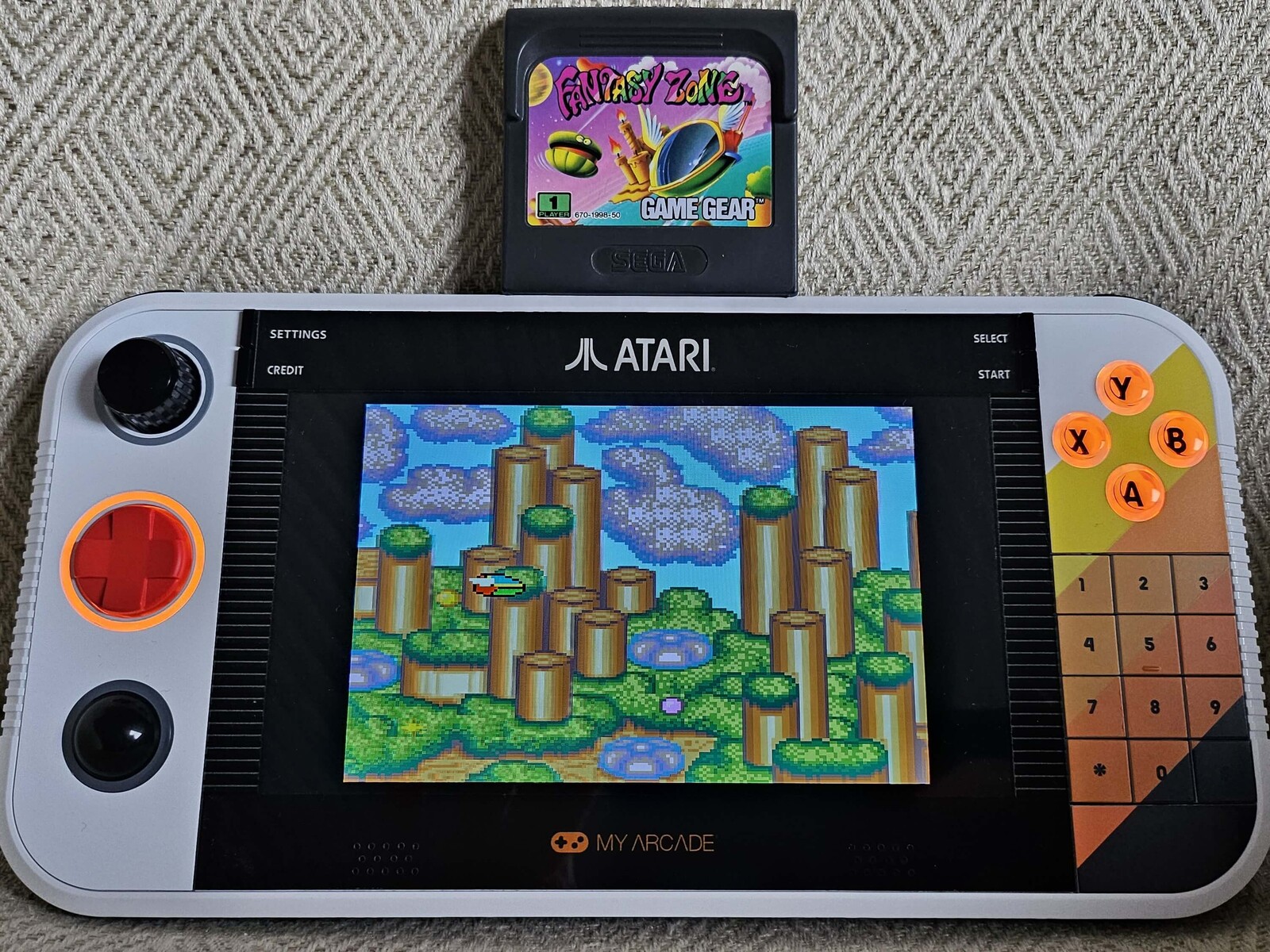 许多游戏,尤其是街机版,都使用纵向显示器。这意味着这些游戏在显示器上显示的画面当然非常小。遗憾的是,到目前为止,还没有将 Gamestation Go 或游戏显示屏旋转 90 度的选项,这样所有三个控制器都可以放在底部,图像也能占满更多屏幕。也许未来的固件更新会增加这一功能,不过垂直使用该设备可能会感觉有点别扭。无论长宽比如何,显示屏都可以按比例填充掌上设备的整个屏幕,这有时会导致奇怪的拉伸或裁剪视觉效果,但在某些游戏中看起来还是非常不错的。