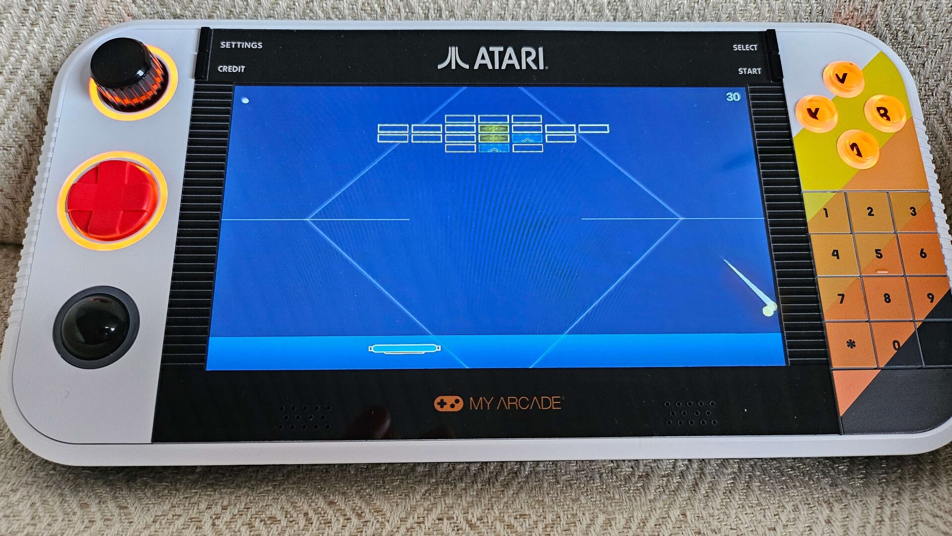 经过一周的实际测试,我对 Atari Gamestation Go 有两种不同的印象。控制器选项的范围令人印象深刻,尽管它们需要一些练习才能适应。用手柄玩 "突围"游戏的感觉比用其他任何输入方法都要好得多,Trak-Ball 的精确度也非常高,尤其是当手持设备通过 HDMI 连接到电视上时,它可以纯粹作为一个控制器使用。菜单井然有序,不过我个人认为 Retro Deck 等界面更有吸引力。内置的 200 款游戏无疑提供了多样性。