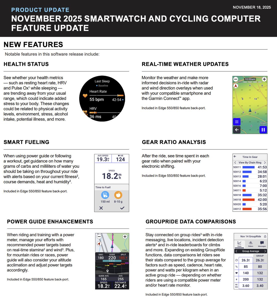 Garmin 声称将逐步发布其 2025 年 11 月功能更新。因此,相应的软件更新可能还需要几周时间才能登陆符合条件的骑行电脑和智能手表。遗憾的是,Garmin 尚未确认相关软件更新的版本号。