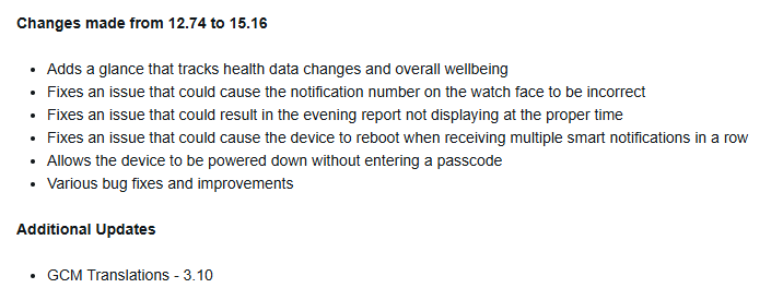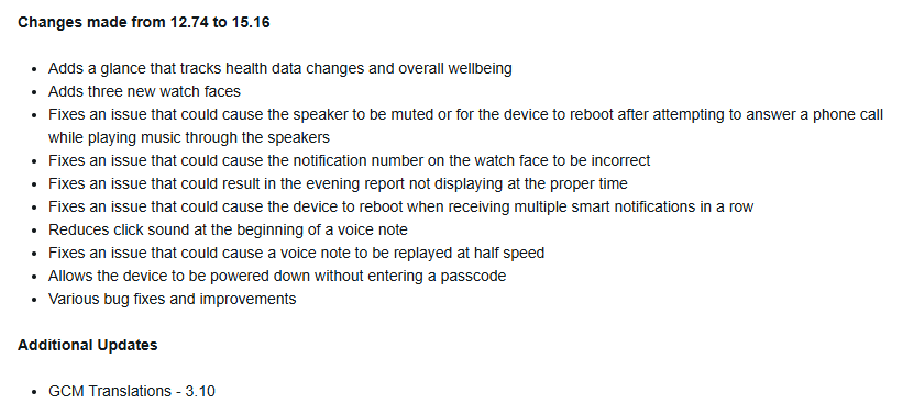 15.16 版本的更改日志指出,开始语音记事时播放的咔嗒声音量已经调低。Garmin 修复了一个问题,该问题可能导致扬声器在试图接听电话时被错误静音。它还解决了手表表面显示的通知号码和晚间报告中显示错误时间的相关问题。此外,Garmin Connect Mobile Translations 也升级到了 3.10 版,但目前还不清楚这对用户有什么好处。