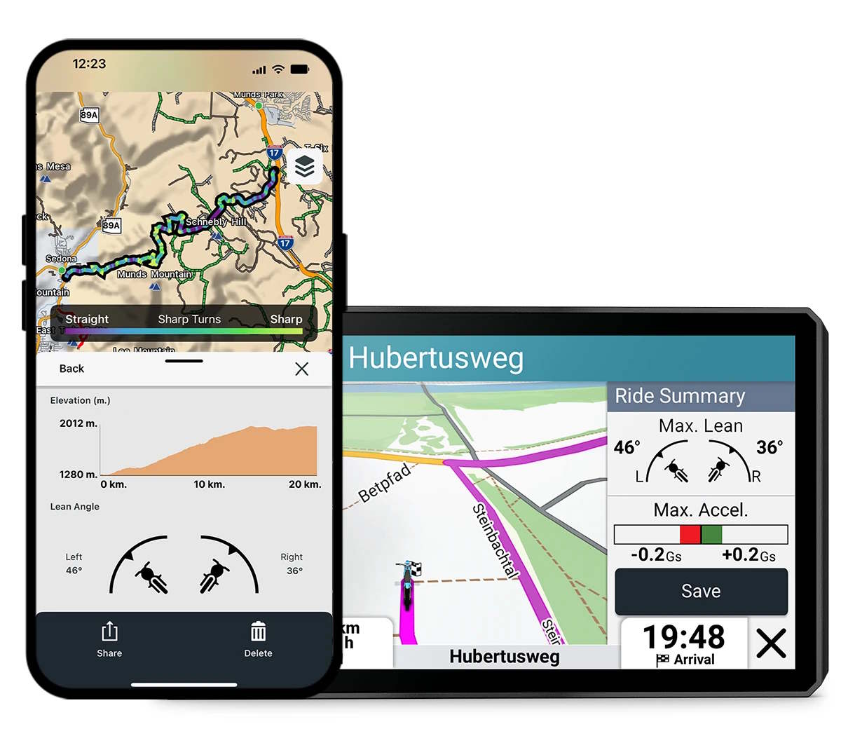 例如,小工具可以显示倾斜角度,说明骑手在转弯时摩托车的倾斜程度。此外,还提供集体骑行功能,用户可以在导航设备上查看其他骑手的位置。不过,这需要间接的蜂窝连接或兼容的配件,以便在没有蜂窝连接的情况下进行跟踪。Zumo XT3 还针对启用了所谓的 Garmin 性能包的赛车手。在这种情况下,它可以显示各种距离的时间、100 公里/小时的加速度和单圈时间。