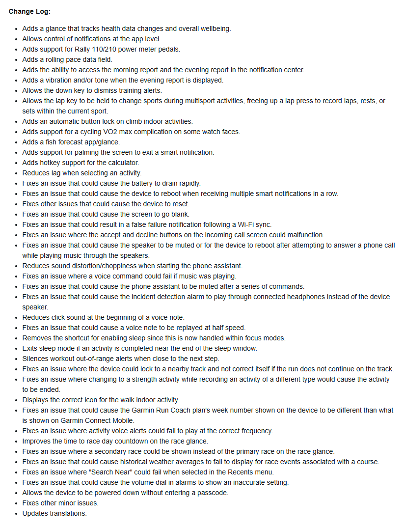 这个稳定版本还解决了各种问题,如电池消耗比预期快、意外重启设备和屏幕无警告空白等。两个变更日志之间只有一个不同之处:Forerunner 970 有一个额外的错误修复,解决了地图上 "搜索附近 "功能不能按预期运行的问题。您可以在下面找到 15.16 版软件的完整发布说明。