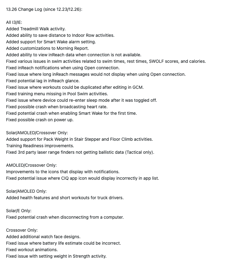 Garmin 13.26 版系统软件是最近在该品牌论坛上发布的。.更改日志显示了一长串新功能和改进,不过其中许多功能和改进是在早前的 13.24 版软件更新中出现的。