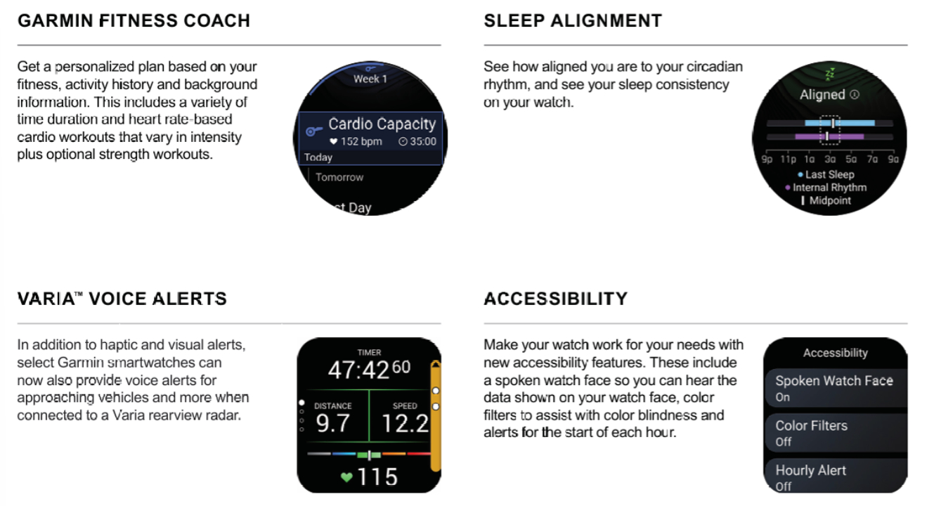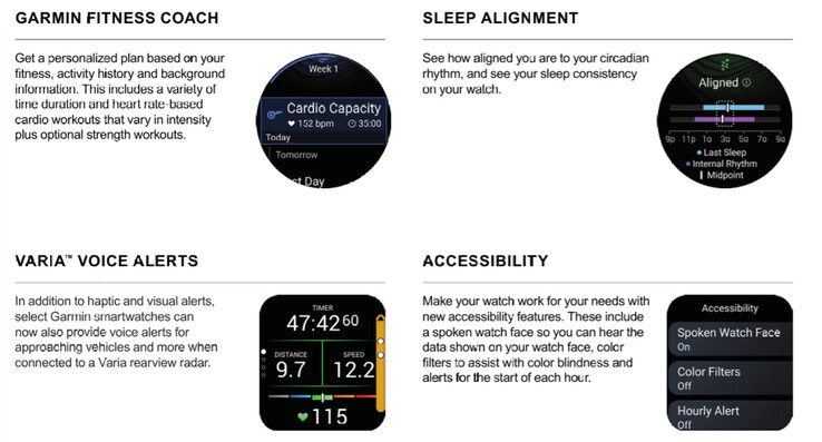 Garmin 在最新的功能更新中重点推出了七项新功能。例如,Garmin Fitness Coach 在 Venu 4(亚马逊当前售价 549 美元)上首次亮相后,将扩展到更多的智能手表上。其他改进还包括 Varia 语音提醒、运动得分和课程规划功能。此外,Garmin 还增加了一个选项,即通过名为 "睡眠对齐"(Sleep Alignment)的功能来查看自己的昼夜节律。