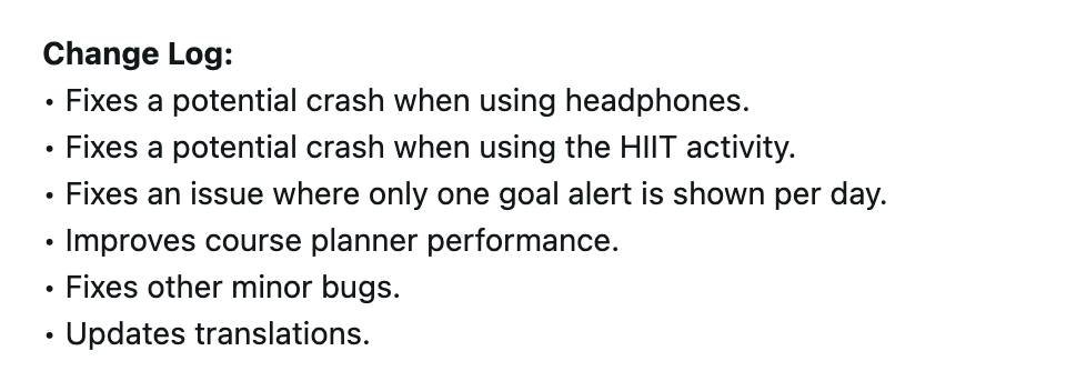 在这个新的稳定版更新中,Garmin Forerunner、Venu 和 vivoactive 智能手表还获得了三个错误修复。其中两个是针对手表连接耳机或进行 HIIT 活动时可能出现的崩溃问题。最后一个修复与目标提醒功能有关;用户每天只能看到一个目标提醒的问题已得到解决。