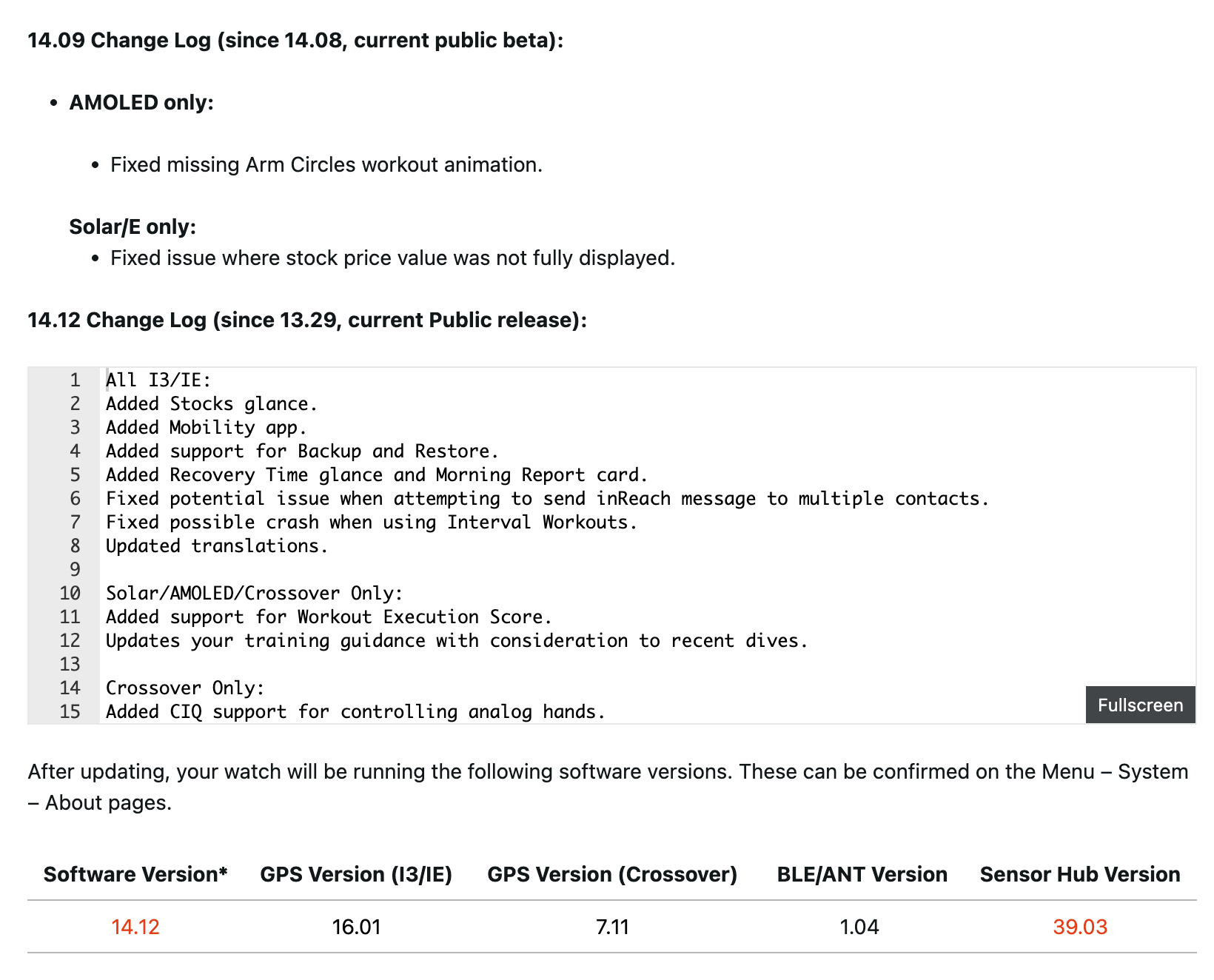 当时,Garmin 声称只解决了两个未解决的错误。目前,v14.xx 测试版的开发似乎仍在进行中,Garmin 将 Instinct E、Instinct 3、Instinct Crossover AMOLED(亚马逊上目前售价 649 美元)保留在 系统软件 13.29系统软件。不过,其最新的测试版 14.12 更新似乎没有带来任何新功能。