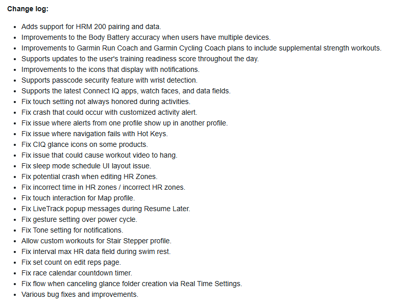 早先的测试版变更日志中没有显示的一项修正是支持新的 HRM 200 配件,允许您配对可穿戴设备以同步数据。此外,这些先行者智能手表还获得了身体电池TrueUp工具,通过同步相关数据点,为拥有多台设备的用户提高了这一指标的准确性。